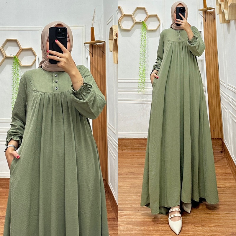 Gamis Crinkel Terbaru 2024 Dress Elegan Simpel Mewah Jemina Airflow Premium Busui Saku Tali Samping