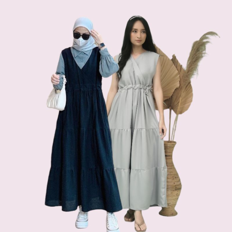 MARIA COLLECTION Fetta Dress - Gamis Sleeveless tanpa lengan Remaja Dewasa Style Casual Bahan Syakila All Size